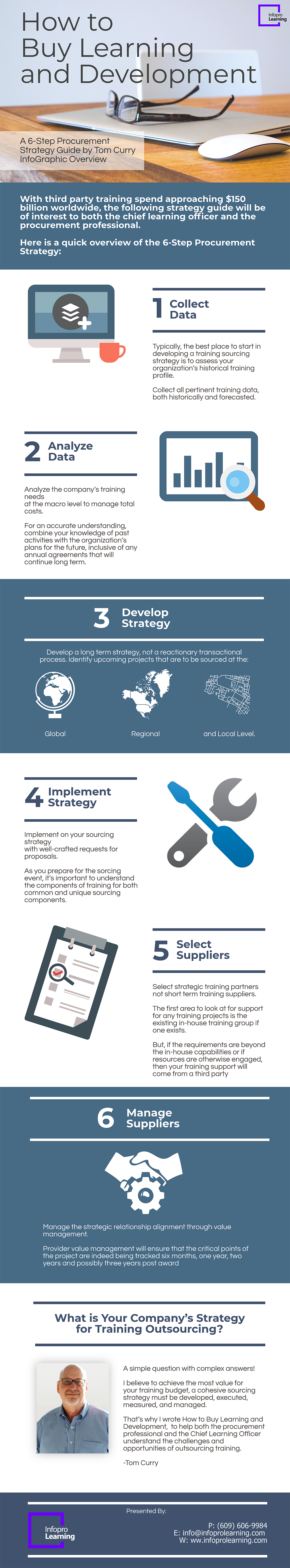 How to Buy Learning and Development is a six-step strategy for how to maximize your corporate learning and development outsourcing. To give you a sneak peek of the free eBook here is an infographic that highlights the six steps: