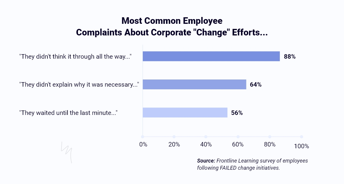 1. Poor planning: Employees felt that the change initiatives were poorly thought out and didn’t consider all the possible consequences.