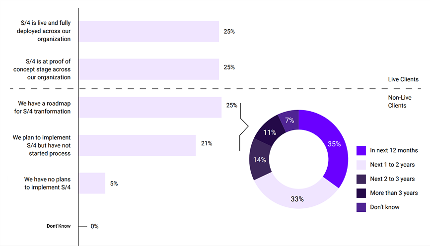 According to PWC survey, approximately 25% of SAP clients were at the proof-of-concept stage migrating to S/4HANA, with another 25% having the system live and fully deployed. Additionally, 35% of clients planned to go live within the next year. This indicates that over 60% of SAP clients were either at the proof-of-concept stage or anticipated a go-live within the following year. The need for perfect adoption is important, like never before.
