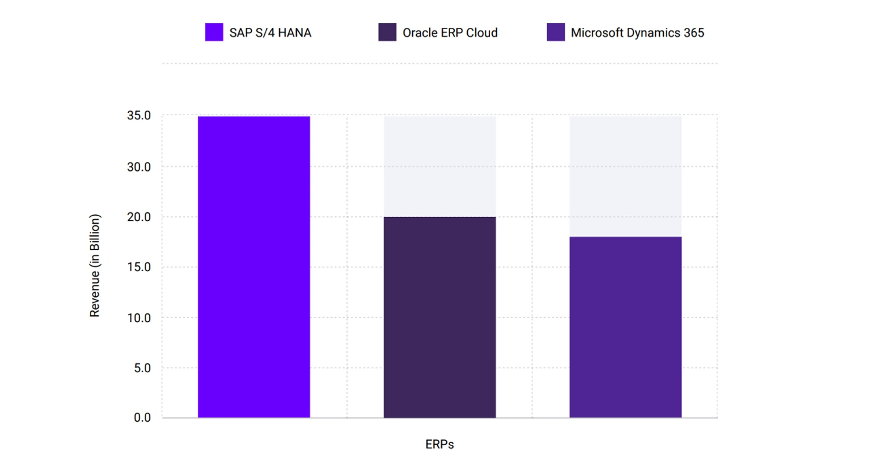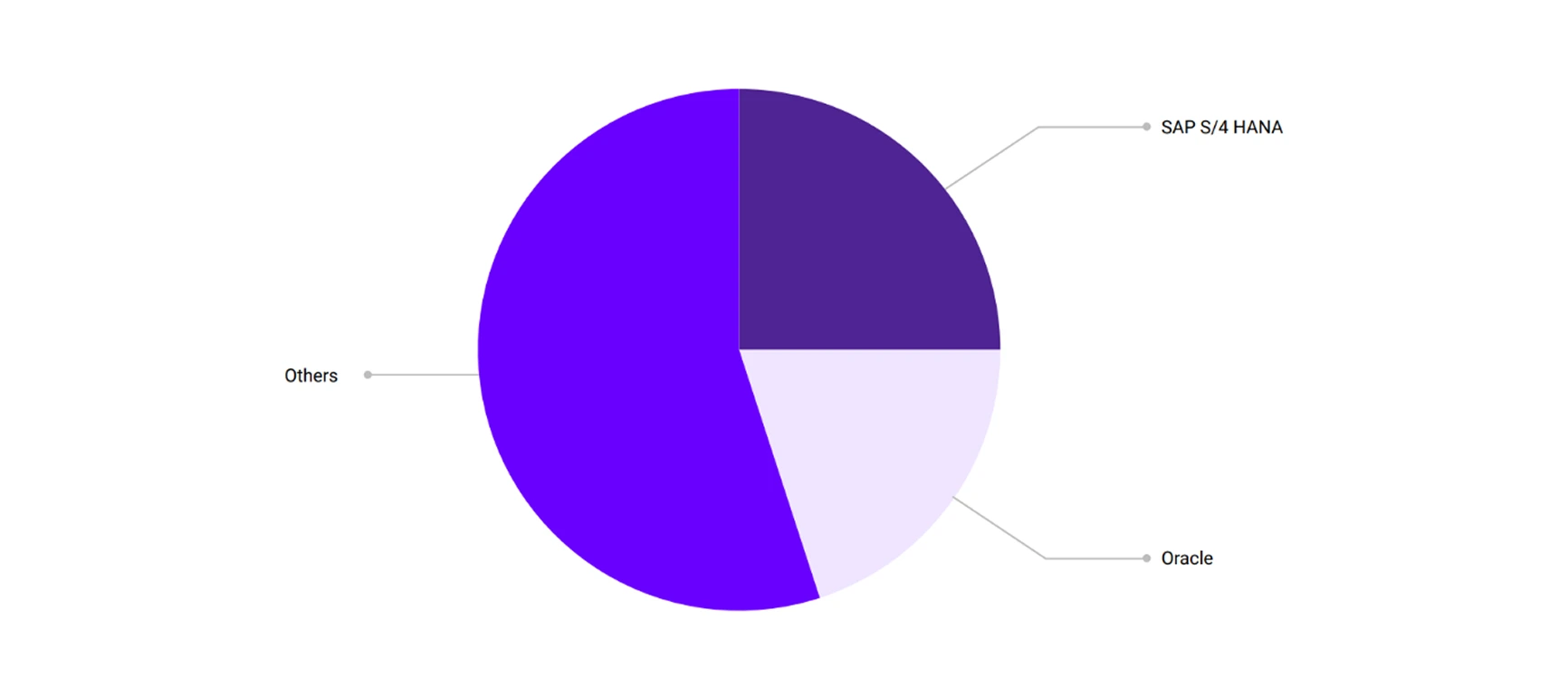 The chart below demonstrates the dominance of SAP S/4HANA in the ERP market.