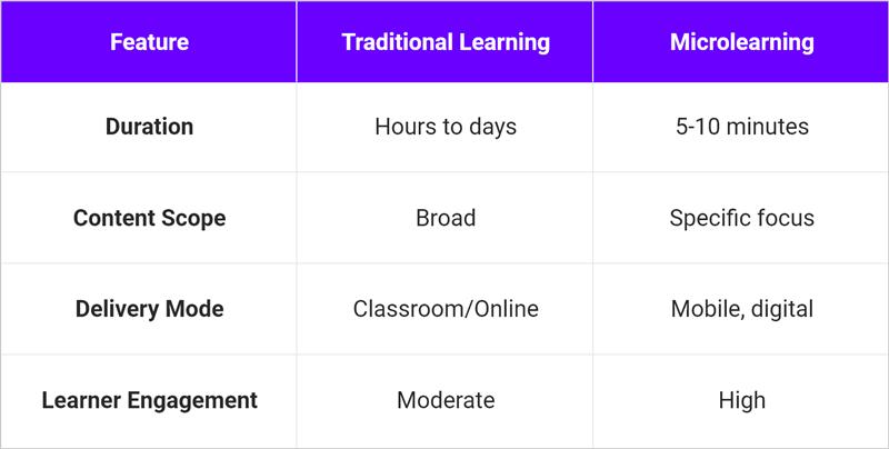 Microlearning employs catchy delivery modes, including storytelling, gamification, and real-life scenarios. It keeps learners engaged and has higher participation rates.