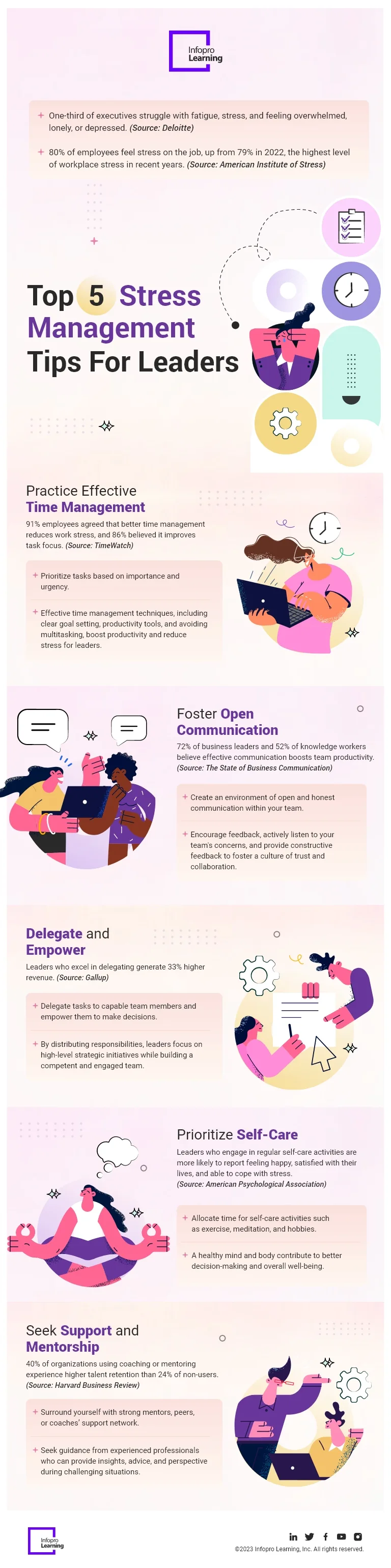 When leaders take care of their own stress and practice self-care, they set an example for others to do the same. This positively impacts the organization or community, making it healthier and better prepared to handle difficult situations and future crises. Backed by data points, the infographic provides valuable insights into the art of stress reduction specifically tailored for those in leadership positions.