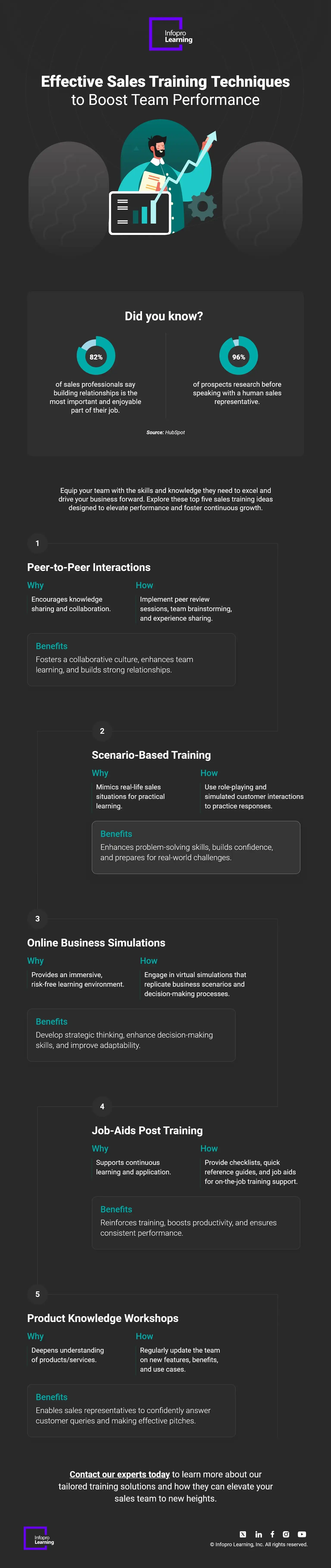 Explore our infographic to uncover five impactful sales training ideas that are revolutionizing how teams achieve and exceed their goals. From peer-to-peer interactions that foster collaboration to immersive simulations that sharpen decision-making, each strategy is meticulously crafted to equip your sales force with the skills and confidence needed to thrive in today’s fast-paced sales environment.