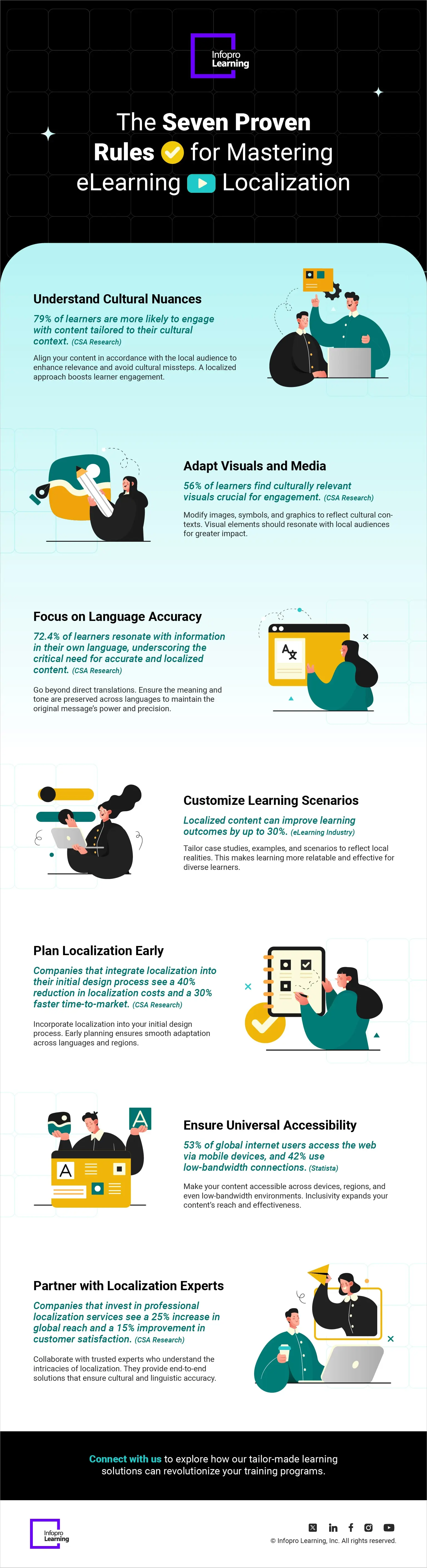 This infographic outlines the seven rules you can follow to ensure your localized content drives both learner engagement and business success.