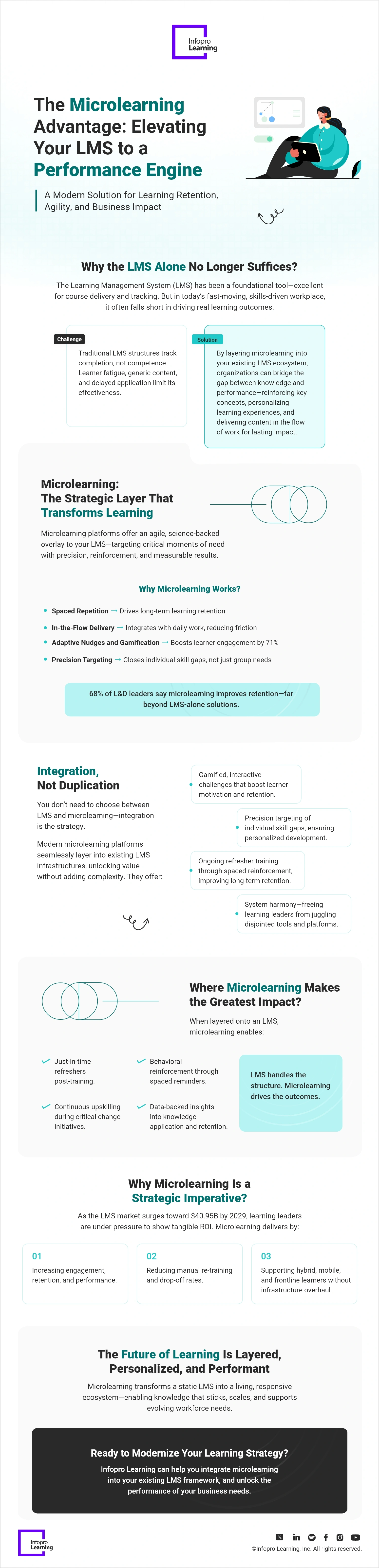 Learn how integrating microlearning into your LMS infrastructure can future-proof your learning strategy—without overhauling what you’ve already built.