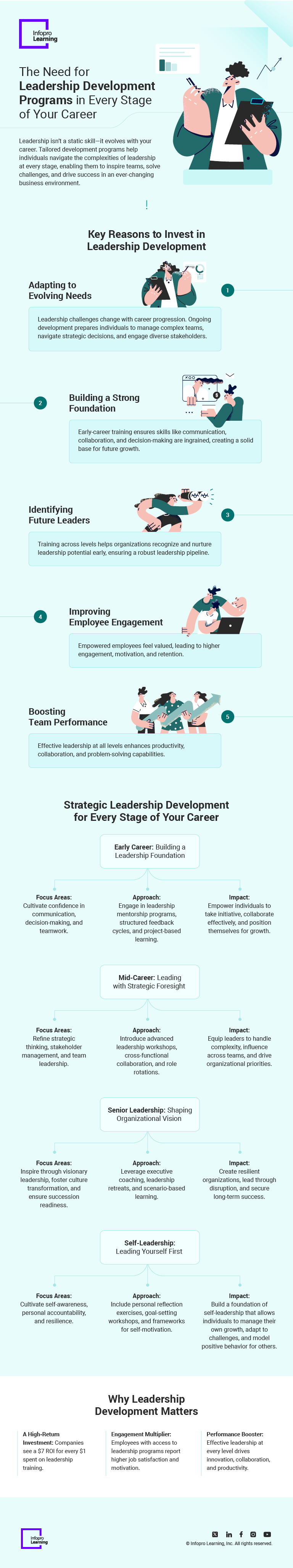 Leadership is not a one-time achievement—it’s an evolving journey that grows with your career. Whether you’re entering leadership roles, advancing to mid-level management, or shaping strategies as a senior leader, tailored leadership development programs are crucial to navigating challenges and unlocking opportunities.