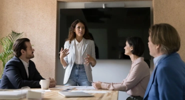 A small group working with a coach to achieve goals, fostering shared learning, peer support, and collective growth.