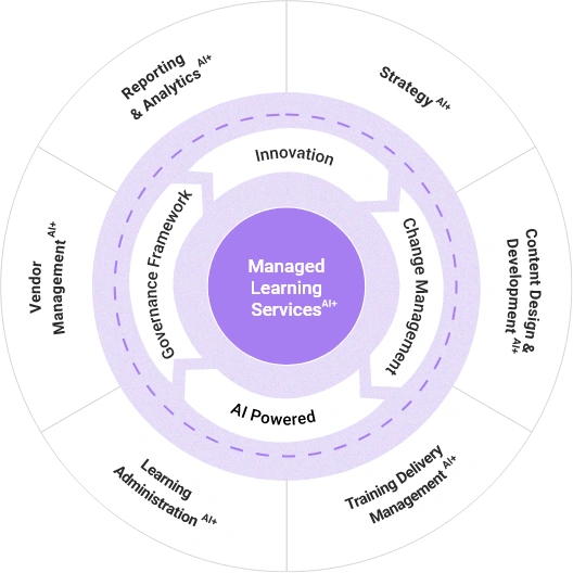 • Integrated and Risk-Free Transition: Deliver end-to-end learning solutions with mature governance, ensuring risk-free transitions and integrating content development, training delivery, administration, and vendor management services