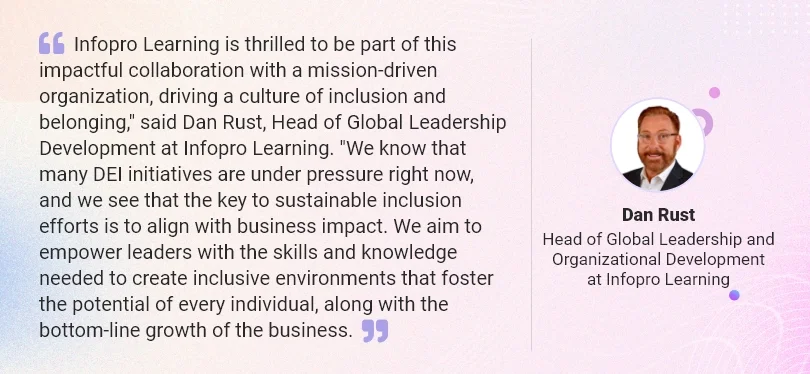 Infopro Learning is committed to supporting organizations in their pursuit of building inclusive workplaces and fostering diverse leadership. Through their partnership with this prominent non-profit organization, Infopro Learning aims to empower the organization’s leaders with the knowledge and skills required to champion diversity, equity, and inclusion.