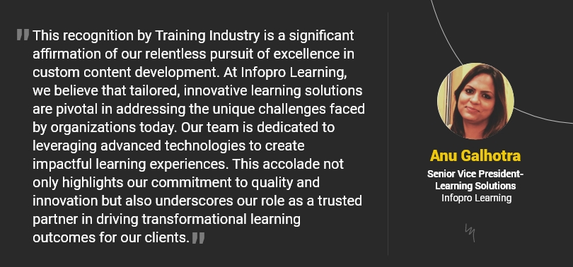 Selection to the 2024 Training Industry Top Custom Content Development Companies lists was based on the following criteria: