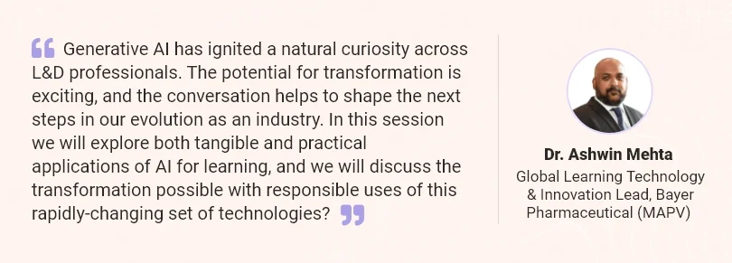 This session promises invaluable insights for business leaders, L&D professionals, and technology enthusiasts, underscoring the transformative potential of AI in shaping solutions that deliver tangible results.