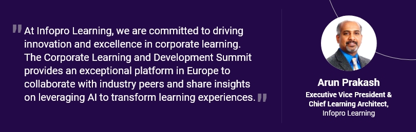 As a Gold Sponsor, Infopro Learning is poised to make a significant impact. Arun Prakash, Executive Vice President & Chief Learning Architect at Infopro Learning, will be a distinguished speaker. Arun’s session, “Skill Up: AI’s Personal Touch in Corporate Learning,” will offer invaluable insights into how artificial intelligence is revolutionizing corporate skills development through personalized learning experiences.