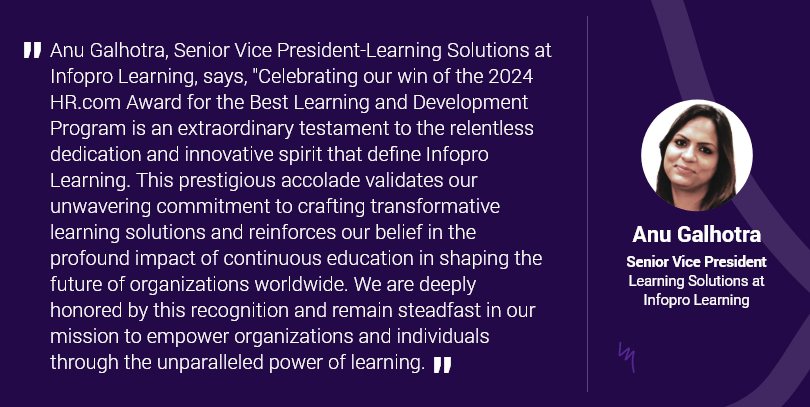 Infopro Learning, a global leader in talent development and managed learning services, is proud to announce that it has been honored with the prestigious 2024 HR.com Award for the Best Learning and Development Program. This recognition is a testament to Infopro Learning’s commitment to excellence and innovation in corporate learning and development.